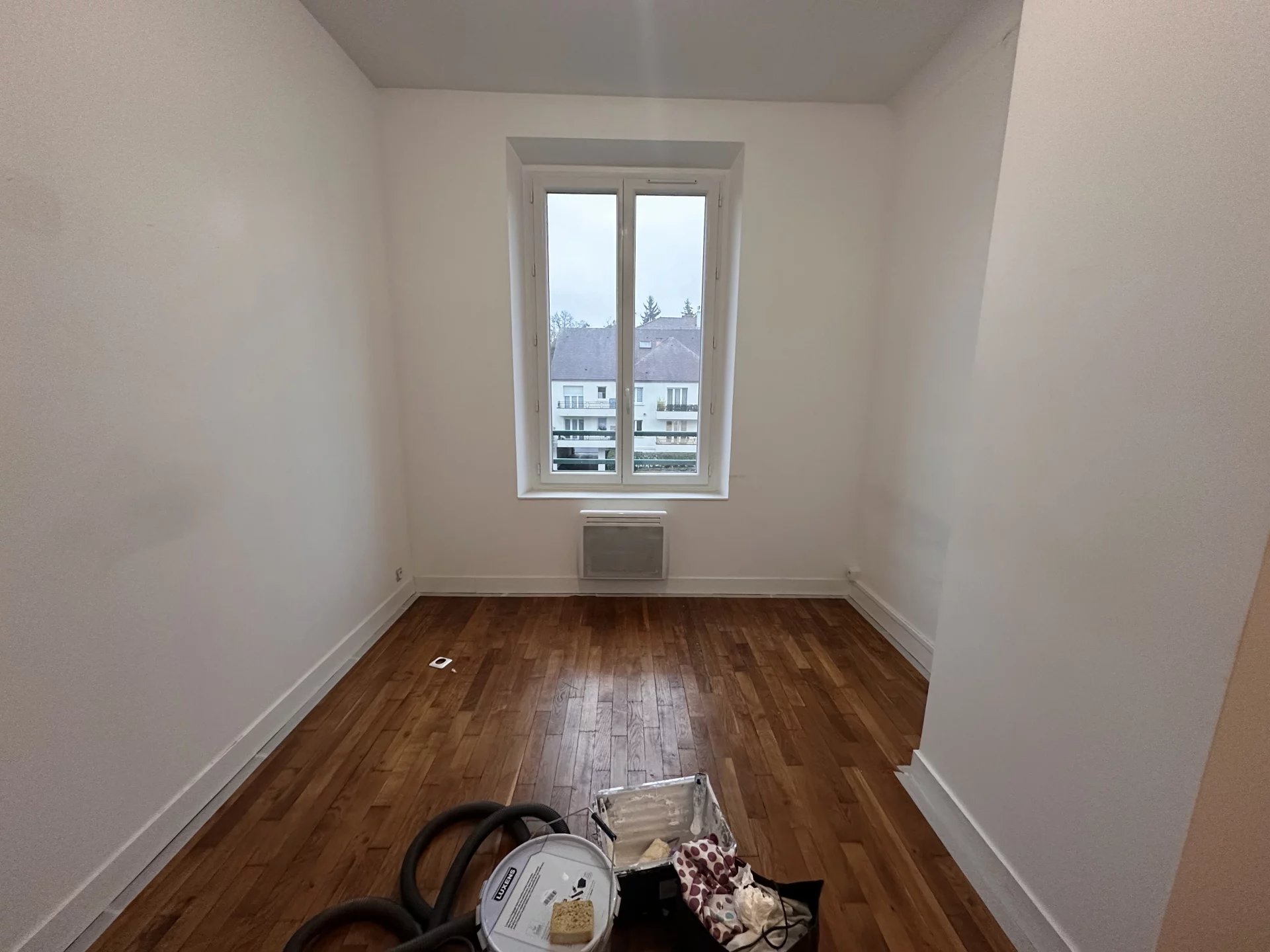 In the center of town, 5 minutes' walk from the train station, F2 apartment of approx. 35m2 on the 1st floor of a small secure building with a digicode, comprising an entrance hall with cupboard, a living room, a fitted and equipped kitchen, a bedroom and a shower room with WC.