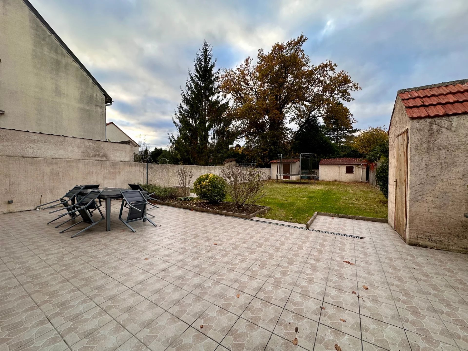 GRETZ-ARMAINVILLIERS, a furnished house type F4, Bois Vignolles area, close to all shops and amenities, RER E station, with a surface area of 99.04 m² on two levels, comprising on the first floor: a living room, a fitted and equipped kitchen, separate WC. 1st floor: two bedrooms, shower room, separate toilet. 2nd floor: bedroom with bathroom. Garden with terrace. Parking spaces.