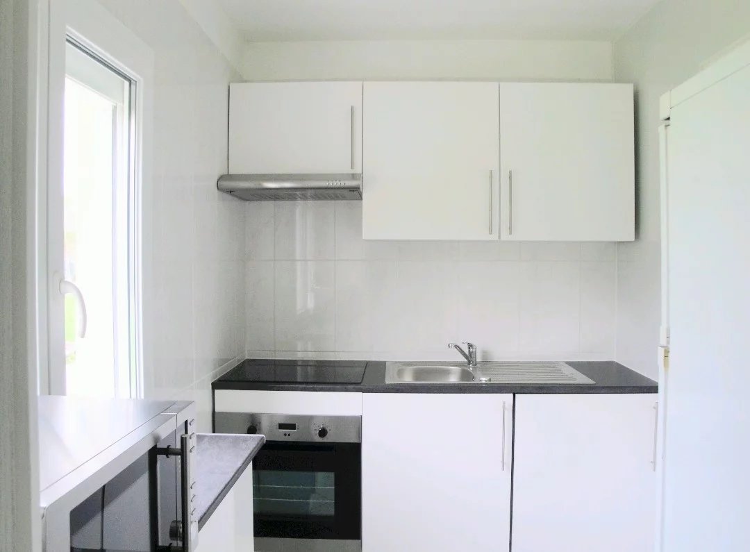 PONTCARRÉ - Appartement de 2 pièces, comprenant : un hall d'entrée avec penderie, 1 chambre avec placard aménagé, 1 séjour, 1 buanderie, 1 cuisine aménagée et équipée avec : hotte, plaque vitro, four, lave-linge, réfrigérateur, micro-onde, 1 salle d'eau avec douche et meubles , WC séparé.