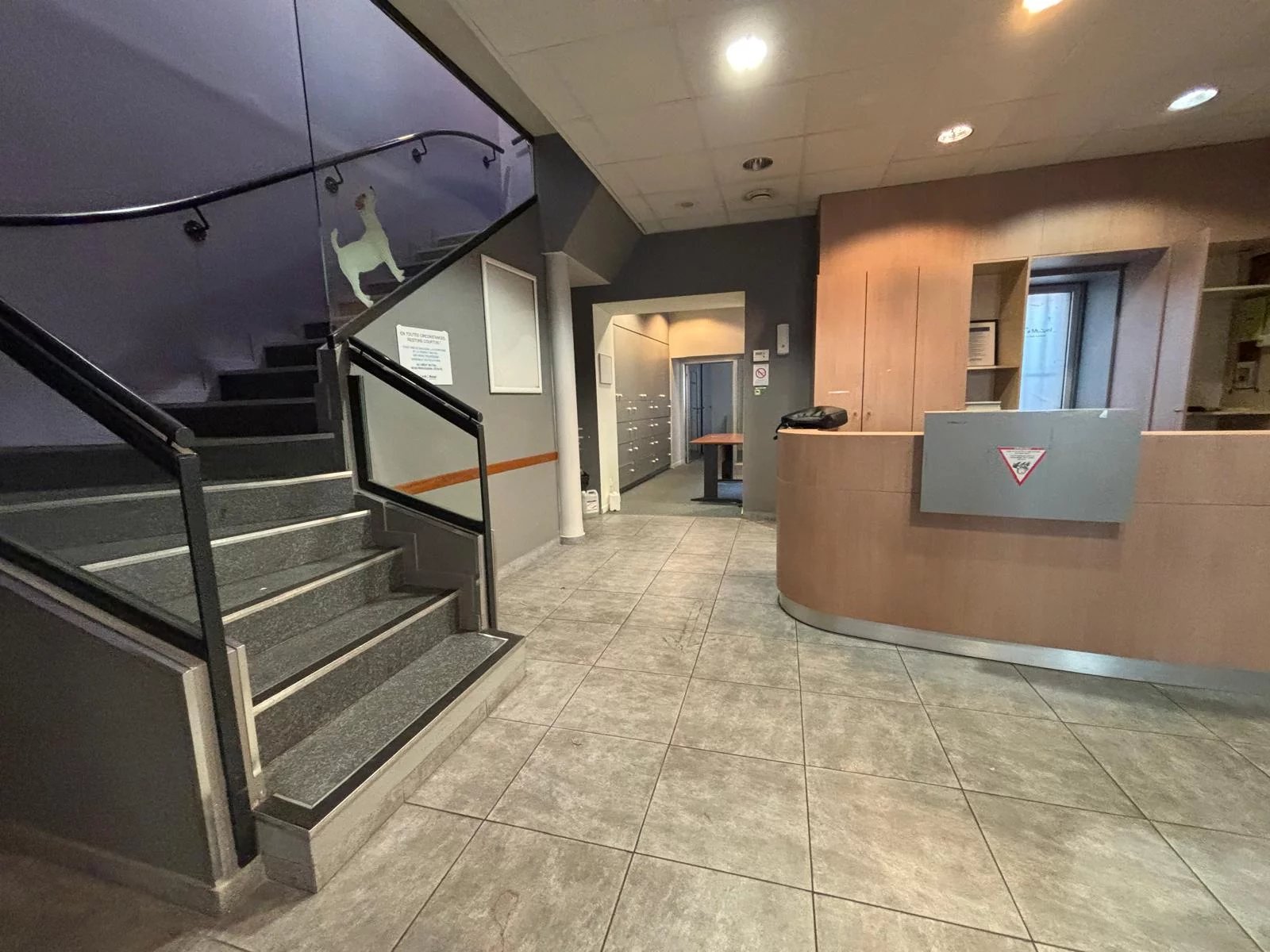 A l'étage : 3 bureaux, un local technique, un local pour , des toilettes avec lavabo.